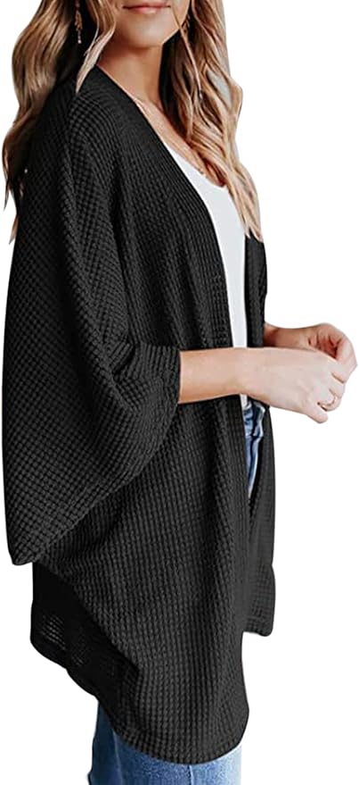 Snuggle into soft waffle-knit texture with this batwing-sleeve cardigan. The oversized, open-front silhouette layers easily over tees, dresses, or loungewear, while the breathable cotton-poly blend keeps you comfy from couch to coffee run. Lightweight but cozy, it’s the grab-and-go piece you’ll wear on repeat.