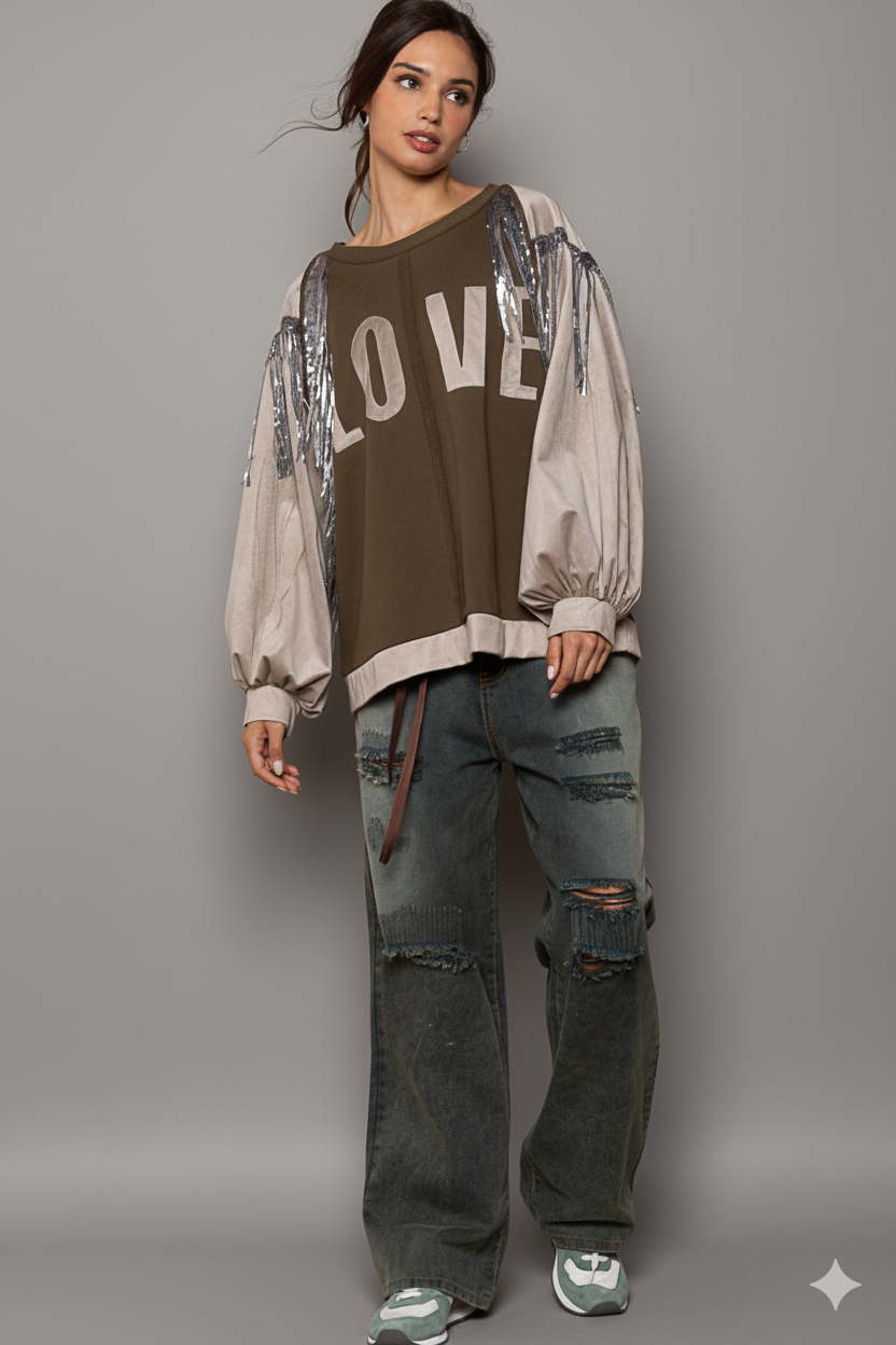 Stay cozy in style with this POL sweatshirt that marries relaxed comfort and eye-catching detail. The soft French terry fabric (51% cotton, 49% polyester) ensures warmth and ease, while balloon sleeves elevate the classic silhouette. Sequin tassels add a playful touch of sparkle, making it perfect for jeans, leggings, or lounging in style.
