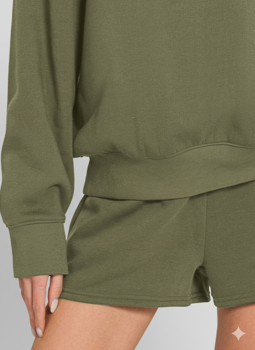 Cozy Oversized Fleece Sweatshirt & Shorts Lounge Set – Relax in Luxe Comfort