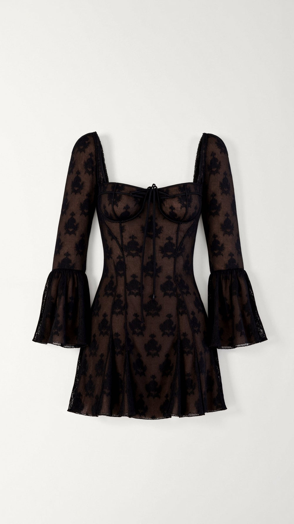 Dreamy Lace Detailing: Beautifully crafted lace overlays the dress, creating a soft illusion effect for a look that feels effortlessly enchanting.