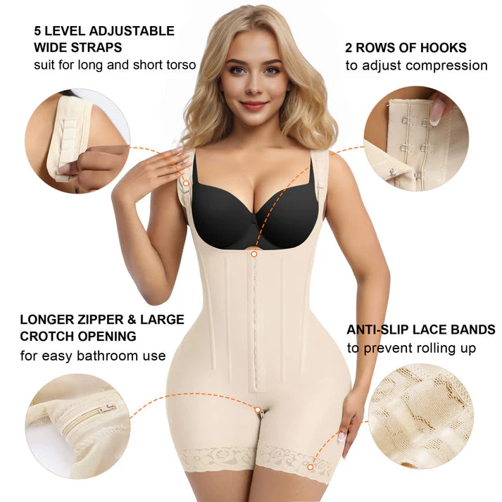 Convenient Bathroom Use: Characterized by a zipper crotch design, this shapewear permits effortless access without sacrificing its snug fit.
