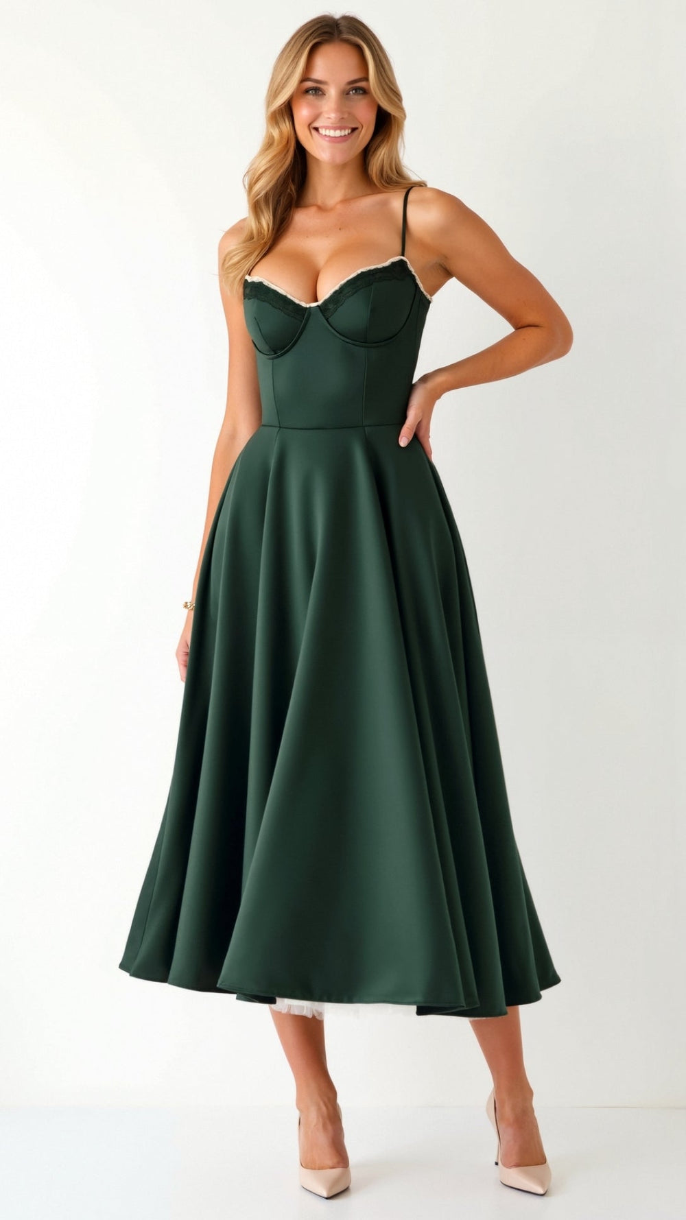 Flattering Bustier-Style Bodice: Enjoy a perfectly framed silhouette, accented with contrast piping for a touch of timeless beauty.