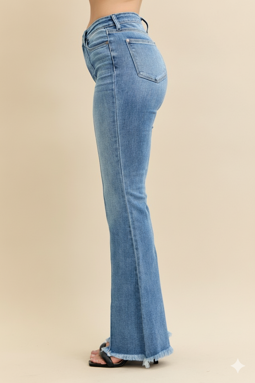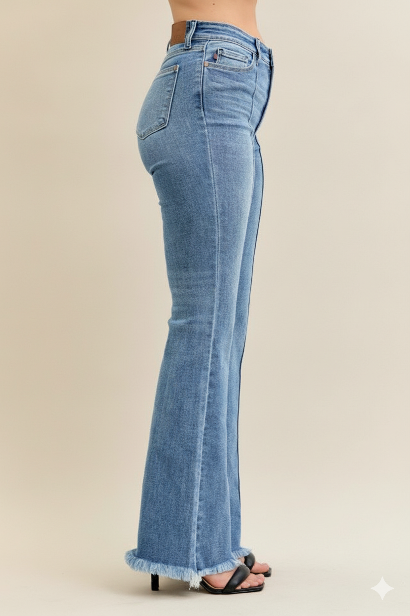 Step into a look that fuses vintage charm with modern comfort. These Judy Blue High Waist Flare Jeans feature a front pintuck seam that visually elongates your legs and slims the silhouette. The high rise waistband offers tummy smoothing support while the frayed hem adds that edgy, lived‑in finish. Crafted from a stretch denim blend (93% cotton, 6% polyester, 1% spandex), they deliver structure with flexibility. A full 33" inseam in both regular and plus sizes ensures a dramatic flop over boots or ideal break for heels. Offered in sizes 0/24 through 15/32 + plus sizes 14W‑24W, these jeans are designed to flatter many body types.