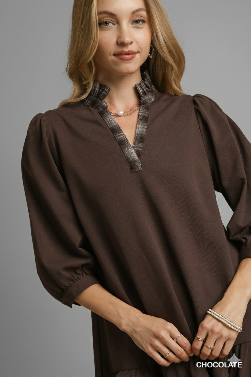 Discover the perfect blend of softness and style with this French Terry Ruffle Hem Dress featuring a charming plaid trim. Crafted from a soft cotton-rich knit (85% cotton, 15% polyester), it promises stretchy comfort and easy day-to-night wear. The flirty ruffled hem brings a youthful touch, while subtle plaid detailing keeps your look stylish and fresh. Lightweight yet cozy, this dress balances comfort with chic—all without sacrificing ease