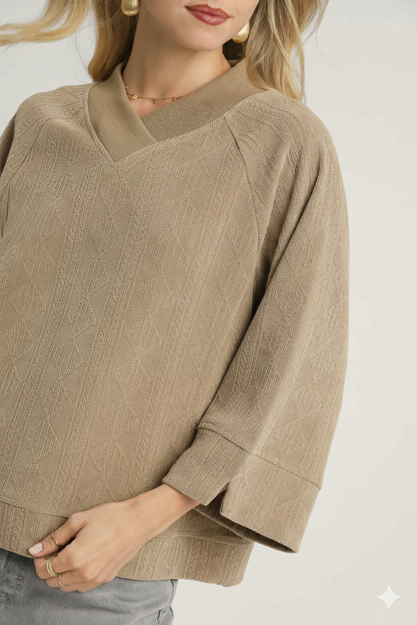 Elevate your daily style with this Umgee Textured Knit V‑Neck Top—where subtle knit details meet effortless versatility. Crafted from a soft, stretchy blend of 97% polyester and 3% spandex, it delivers a flattering V-neckline and slight elasticity for comfortable movement. Perfect for layering under blazers or wearing solo, it effortlessly transitions from casual outings to polished office looks. A classic yet fashion-forward piece tailored for versatile styling.