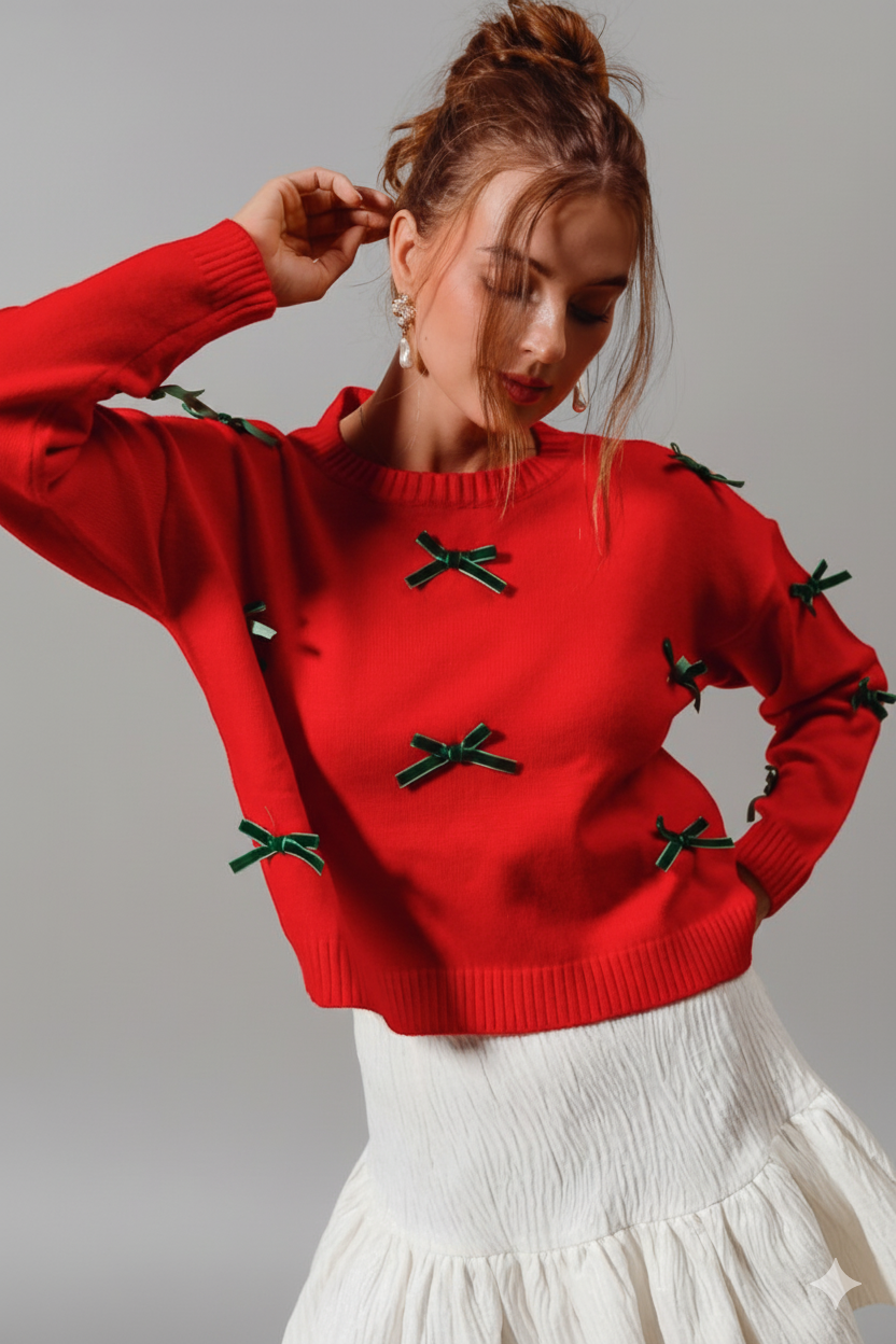 Transform your cold‑weather wardrobe with the SO ME Ribbon Bow Applique Sweater, a sweater that balances playful design with cozy comfort. Featuring a soft 100% acrylic knit, a flattering ribbed hem, and a ribbon bow applique that adds a feminine focal point, this sweater shines on both casual days and pretty nights out. Slight stretch in the fabric ensures ease of movement without sacrificing shape. Available in the classic Red/Hunter colorway and full S‑XL sizing, it’s made to pair with your go‑to jeans, midi skirts, or layered under coats.